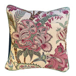 MAGENTA AND OCHRE FLORAL PILLOW WITH SOLID GREEN BACK
