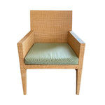 SQUARE BACK RATTAN ARM CHAIR WITH GREEN CUSHION