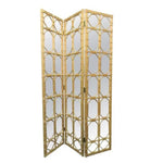 THREE PANEL RATTAN AND MIRROR SCREEN