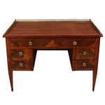 ANTIQUE BURLED WOOD PETITE DESK WITH BRASS GALLERY RAIL