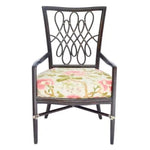 BARBARA BARRY FOR MCGUIRE RATTAN CHAIR WITH FLORAL UPHOLSTERY