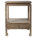 CERUSED OAK NIGHTSTAND WITH DRAWER AND SLIDE OUT SHELF