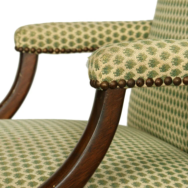 ENGLISH GEORGE III STYLE UPHOLSTERED ARM CHAIR