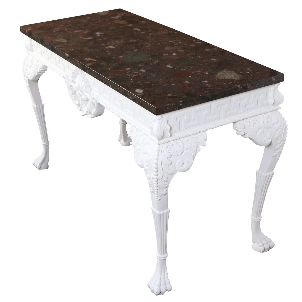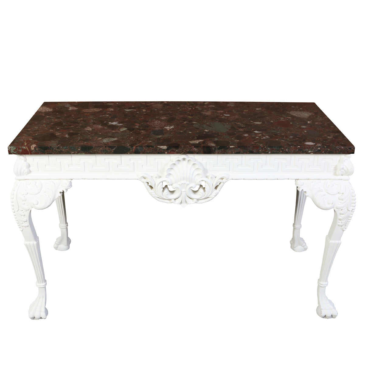 GEORGE III PAINTED MAHOGANY CONSOLE WITH RARE MARBLE TOP
