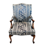 GEORGE III MAHOGANY ARMCHAIR IN CHINOISERIE BLUE DAMASK FABRIC