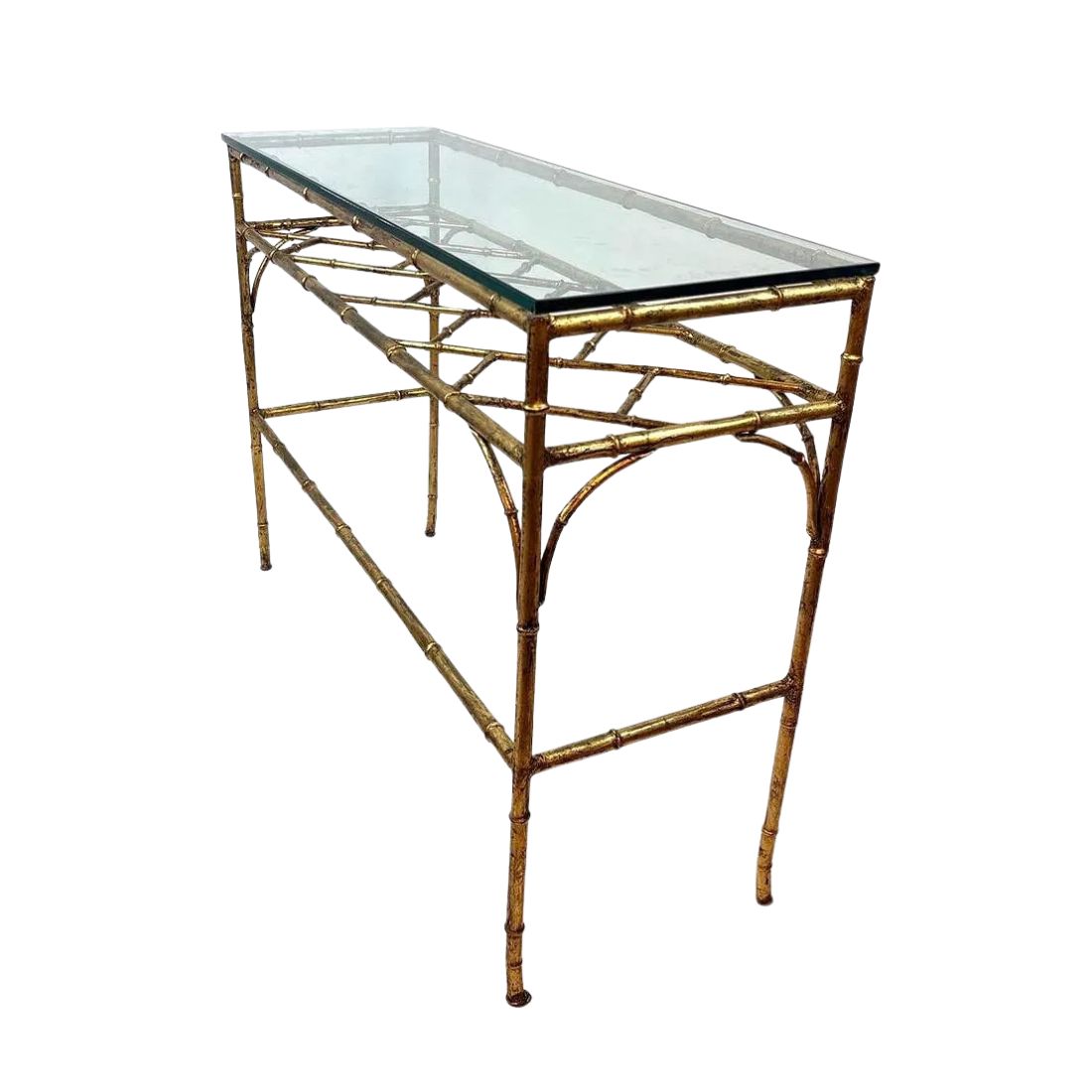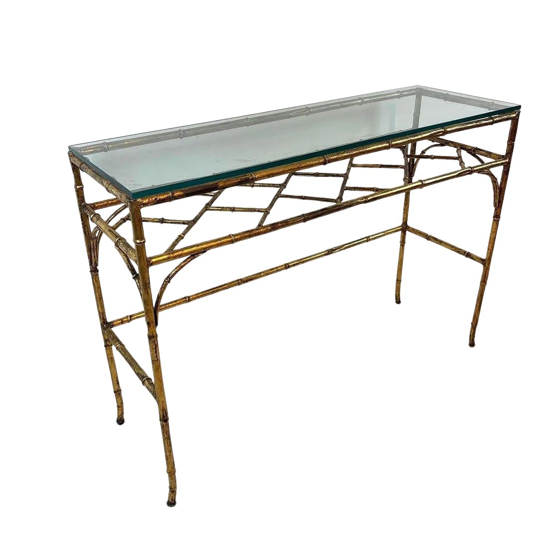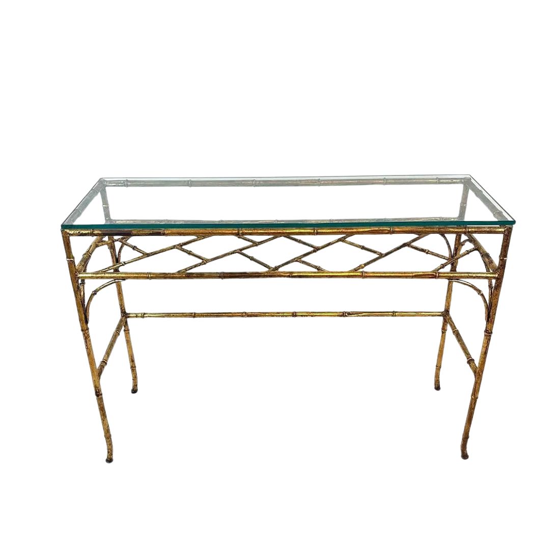 GILT BAMBOO AND GLASS CONSOLE OR SOFA TABLE
