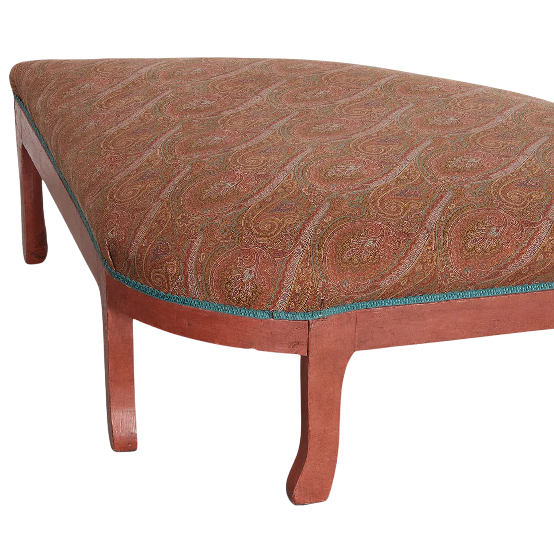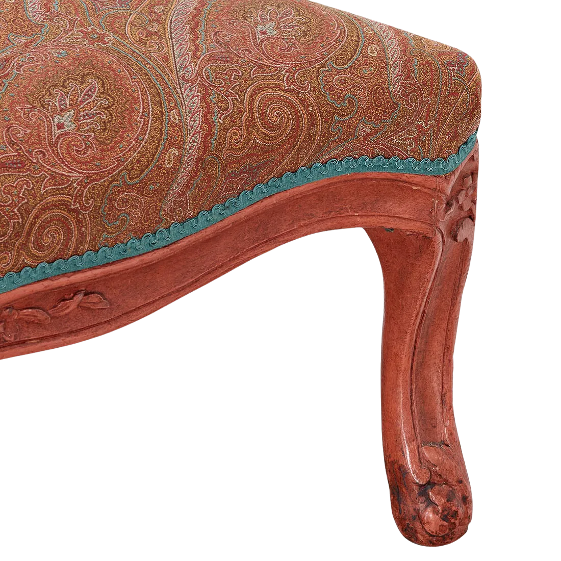 This elegant corner bench features a beautifully carved wooden frame with graceful cabriole legs and intricate detailing. Upholstered in a rich paisley fabric with a subtle trim accent, it adds a touch of vintage charm and sophistication to any corner space.