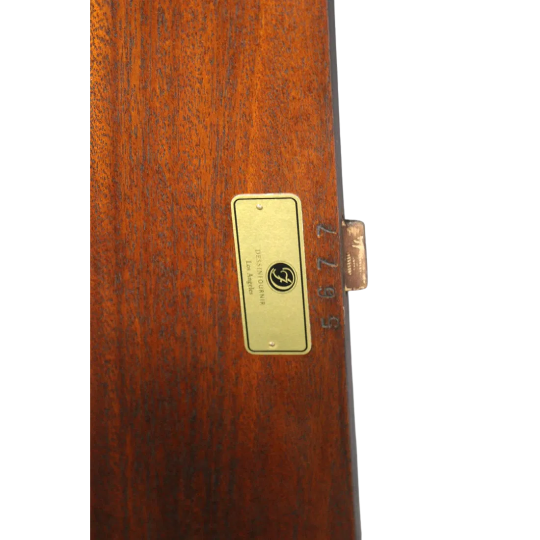 A round Louis Philippe style dining table is crafted from rich mahogany and bears the Dessin Fournir signature, attesting to its quality design and craftsmanship. Classic Louis Philippe details, clean lines, subtle curves, and understated refinement, give the piece its enduring appeal. The warm mahogany finish with gilt detail adds depth and character. The table features a round top with two removeable leaves, allowing it to transition from intimate everyday dining to an oval shape for entertaining in a more generous setting. A versatile and sophisticated piece that blends French inspired design with practical functionality.