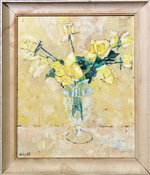 YELLOW FLORAL STILL LIFE FRAMED OIL ON CANVAS
