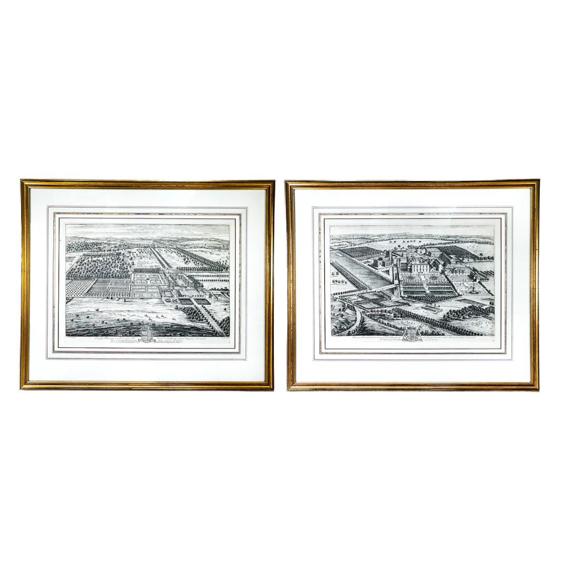 PAIR OF ANTIQUE ENGLISH COUNTRY ESTATE FRAMED ENGRAVINGS