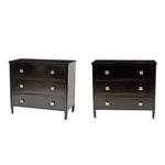 PAIR OF BLACK LACQUER THREE DRAWER CHESTS WITH SILVERED SQUARE KNOBS