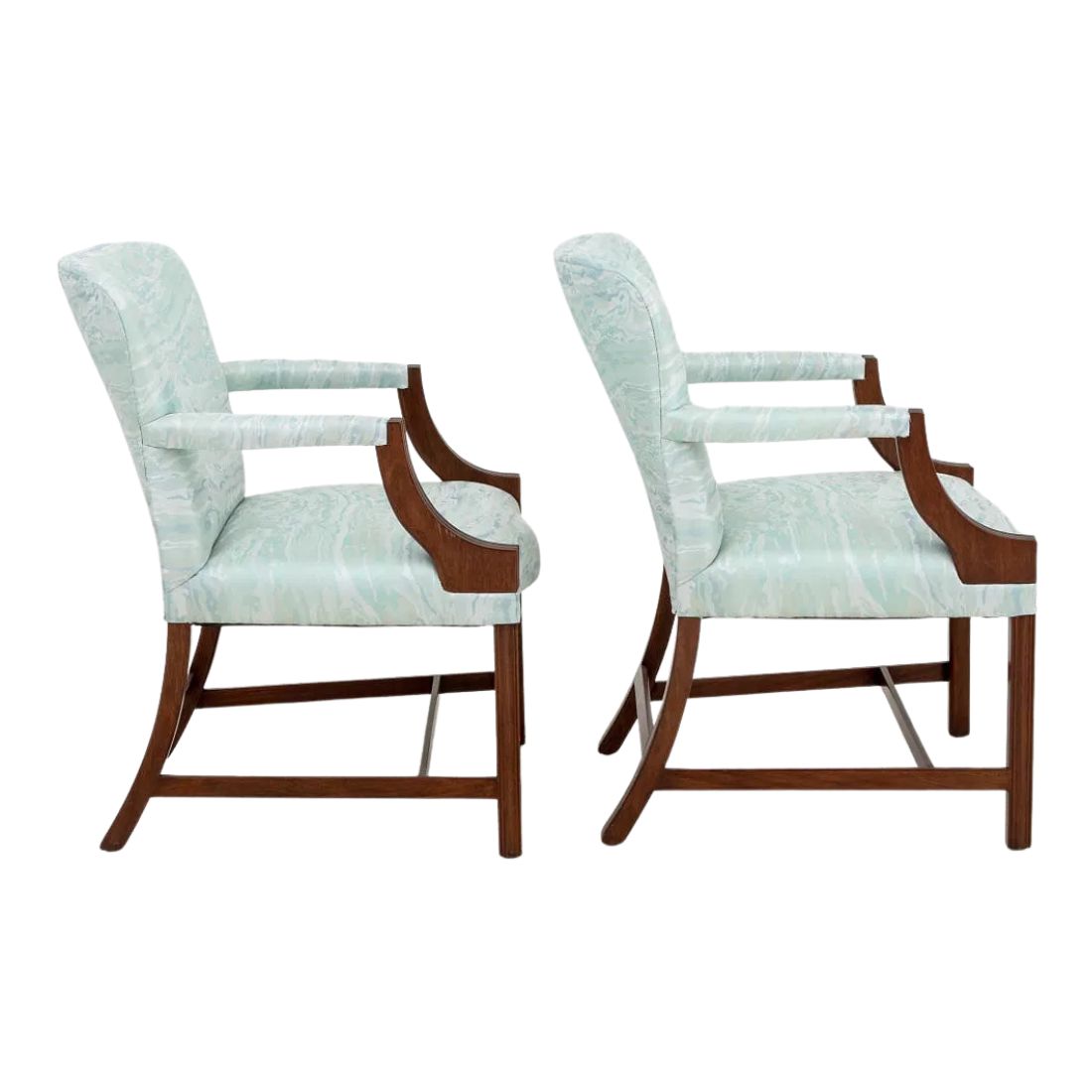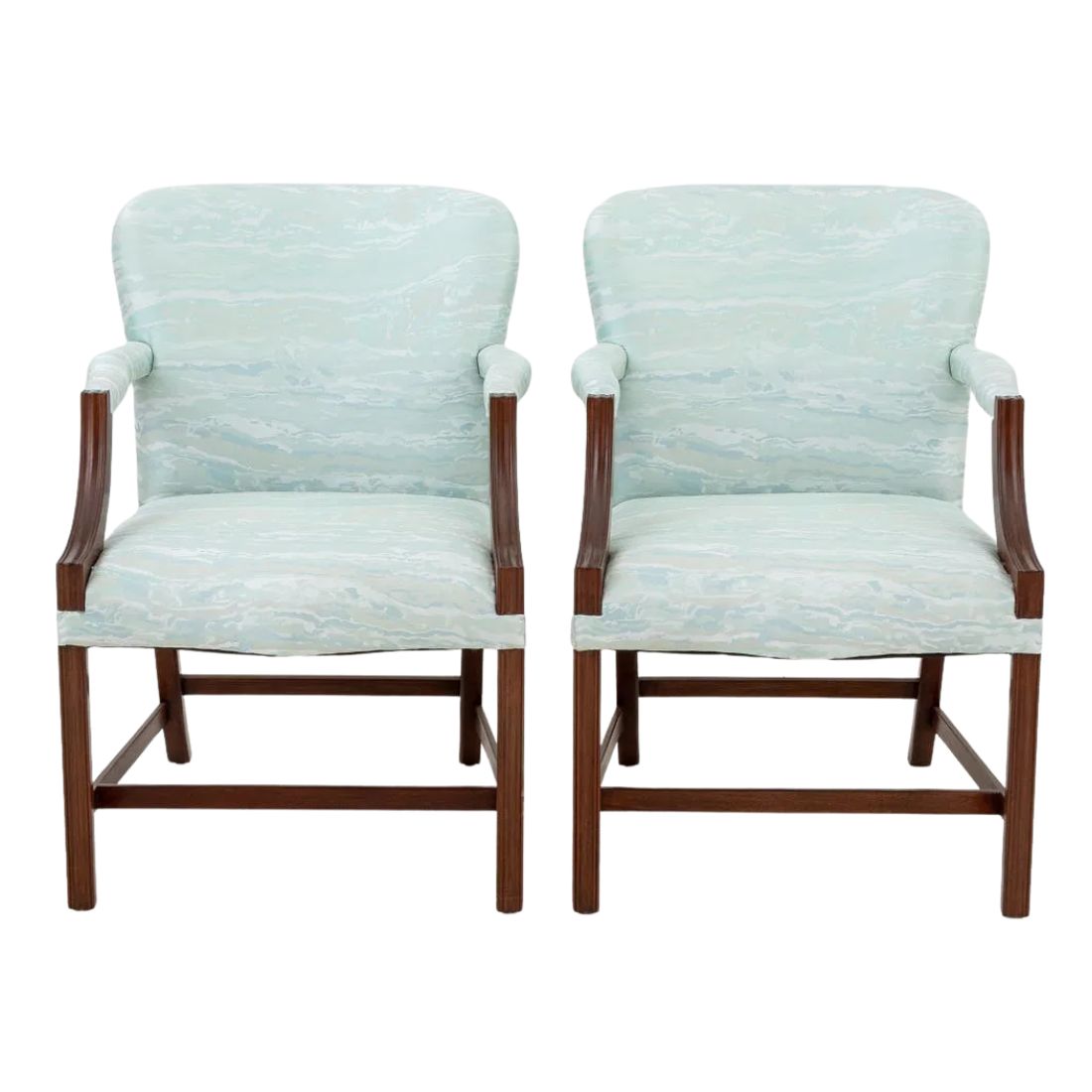 PAIR OF GEORGE III UPHOLSTERED MAHOGANY ARM CHAIRS