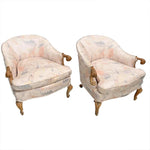 PAIR OF HOLLYWOOD REGENCY UPHOLSTERED BERGERES