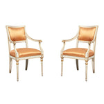 PAIR OF NEIRMANN WEEKS STYLE ITALIAN NEOCLASSICAL PAINTED ARM CHAIRS IN APRICOT SILK FABRIC