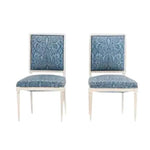 PAIR OF LOUIS XVI STYLE PAINTED SIDE CHAIRS WITH BLUE DAMASK FABRIC