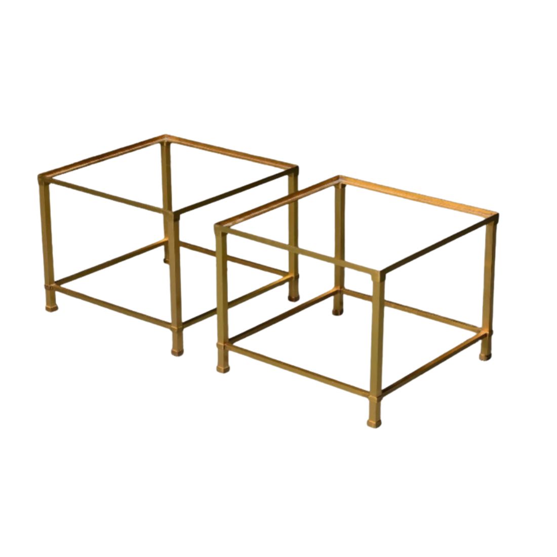 PAIR OF MARC DU PLANTIER BRASS & GLASS SIDE TABLES
