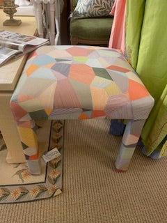 PAIR OF NEWLY UPHOLSTERED MULTICOLOR STRIE PATCHWORK BENCHES
