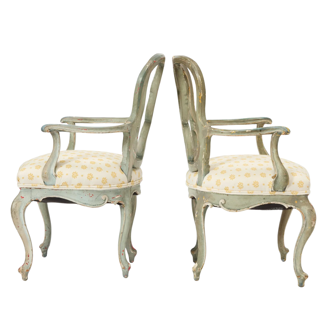PAIR OF VINTAGE PAINTED LOUIS XV UPHOLSTERED ARMCHAIRS