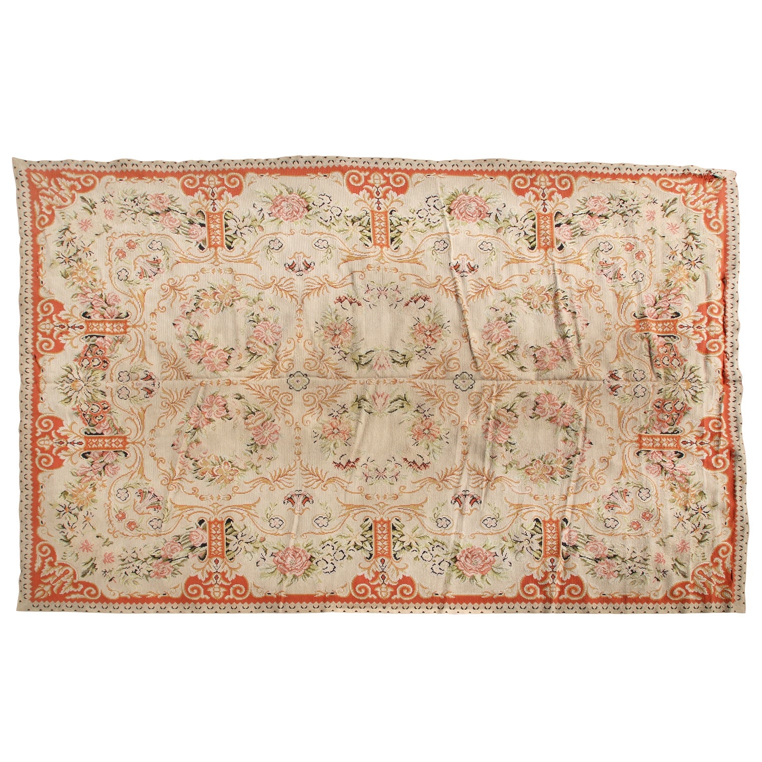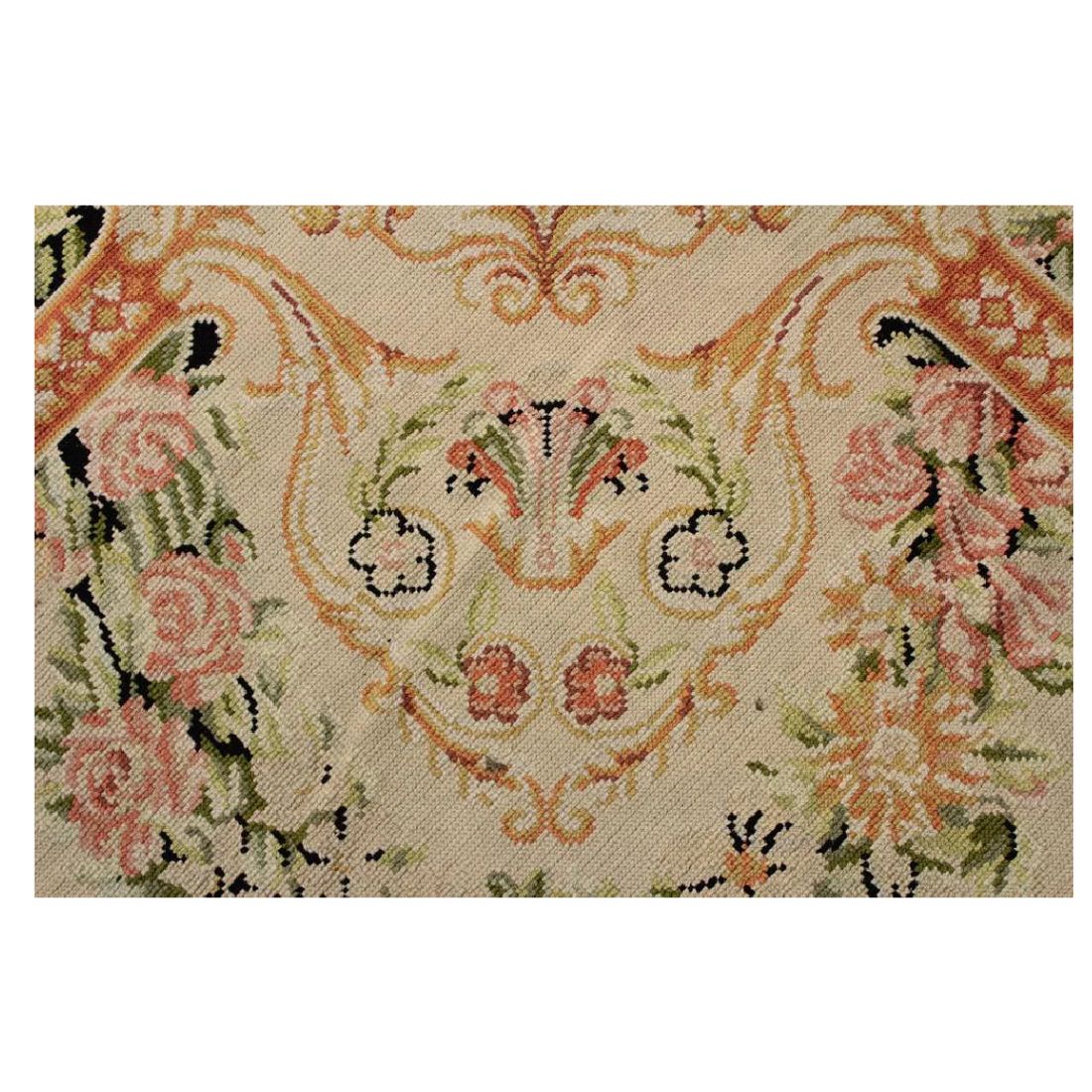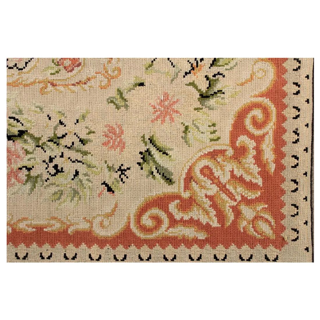 PORTUGUESE WOOL PINK, CORAL AND GREEN NEEDLEPOINT CARPET FROM STARK