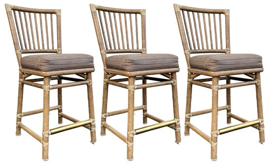 SET OF THREE VINTAGE MCGUIRE RATTAN BAR STOOLS