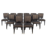 SET OF TWELVE DECO STYLE DINING CHAIRS WITH CURVED CHANNEL BACK AND NEWLY UPHOLSTERED HORSEHAIR FABRIC