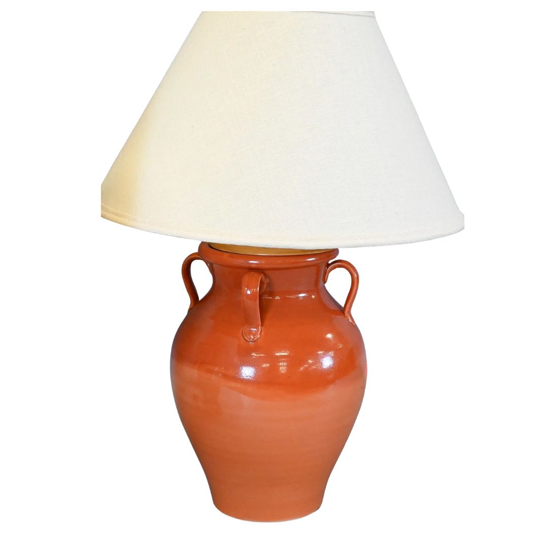 PAIR FRENCH TERRACOTA GLAZED TABLE LAMPS WITH HANDLES