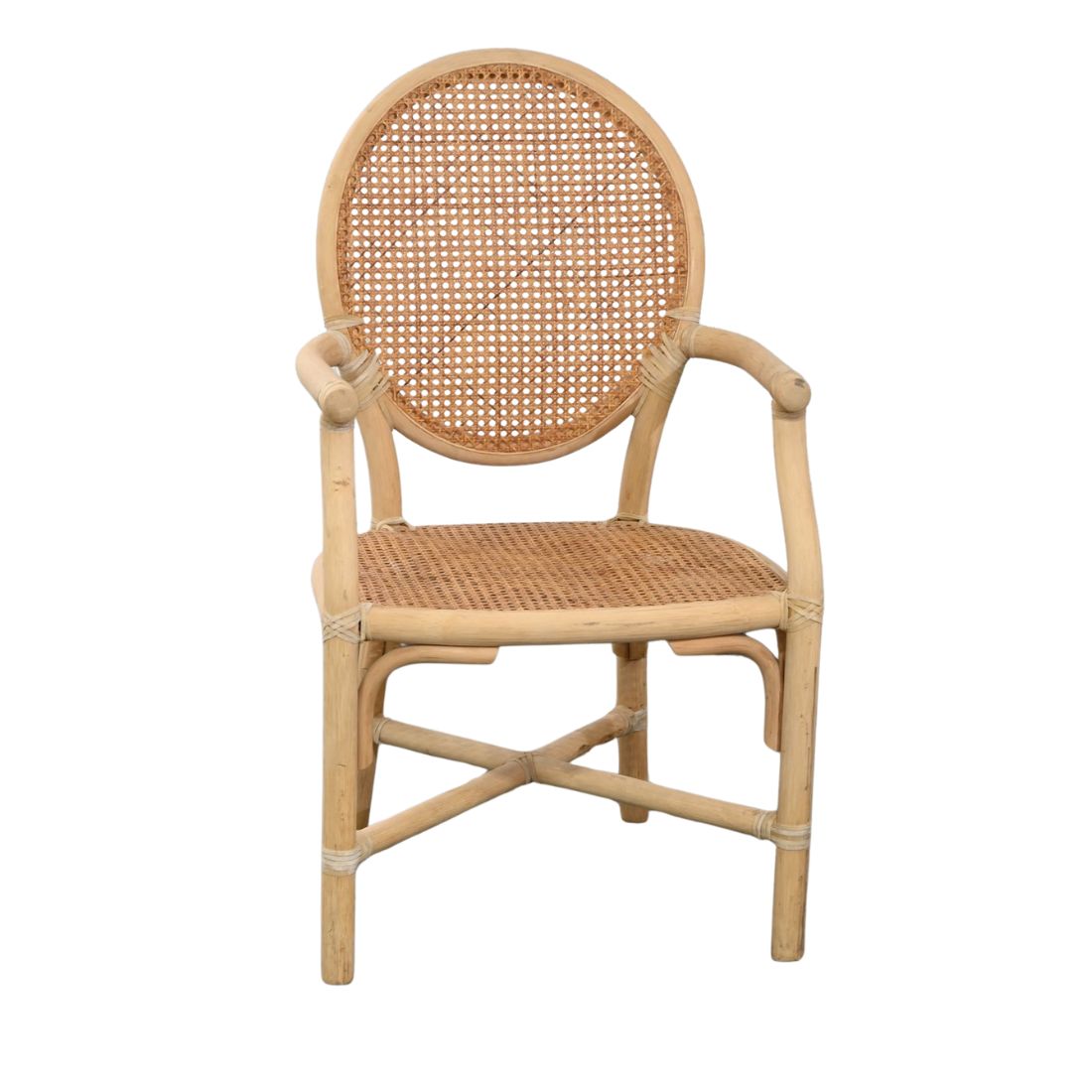 VINTAGE RATTAN AND CANE ARMCHAIR WITH OVAL BACK