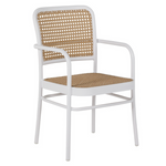 WHITE ALUMINUM OUTDOOR DINING CHAIR WITH CANE SEAT AND BACK