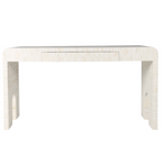 WOODEN AND BONE CARVED WRITING DESK WITH DRAWER