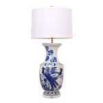 BLUE & WHITE BIRDS & FLOWERS VASE LAMP W/ ACRYLIC BASE