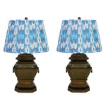 PAIR OF VINTAGE BRASS HEXAGONAL LAMPS WITH RING HANDLES