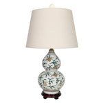PORCELAIN GREEN CRANE DOUBLE GOURD TABLE LAMP