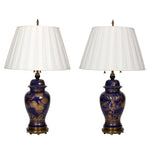 PAIR OF NAVY AND GILT ASIAN VASES MOUNTED AS LAMPS