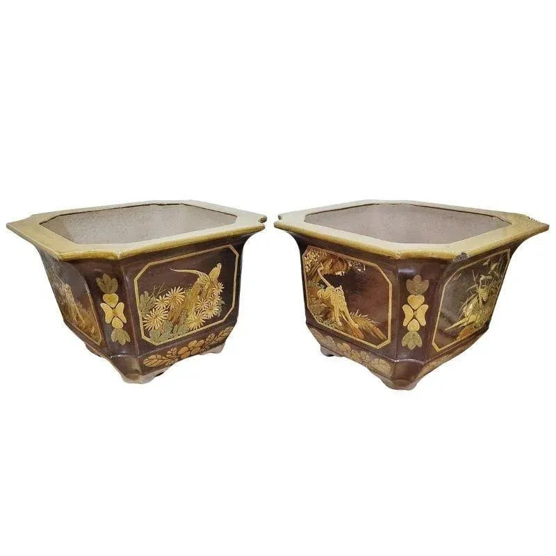 PAIR OF LARGE ASIAN MOTIF PLANTERS