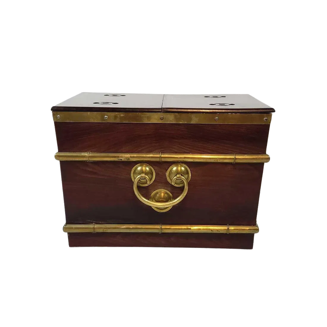 This exquisite Asian rosewood wine bucket features elegant brass fittings and handles, showcasing a perfect blend of craftsmanship and luxury. Its rich wood grain and intricate metal detailing make it an ideal statement piece for any sophisticated bar or home décor setting.