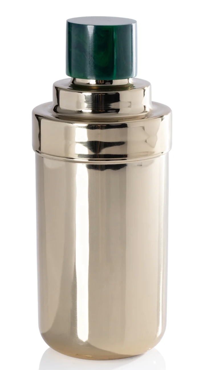 GOLD COCKTAIL SHAKER WITH GREEN ACCENT