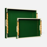 SET OF 2 GREEN TRAYS WITH FAUX BAMBOO HANDLES