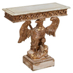 20TH CENTURY FAUX GILT HIGHLIGHTED GEORGIAN STYLE COMPOSITION EAGLE CONSOLE TABLE WITH FAUX MARBLE TOP
