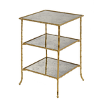 BRASS AND ANTIQUE MIRROR THREE TIER MINI ETAGERE