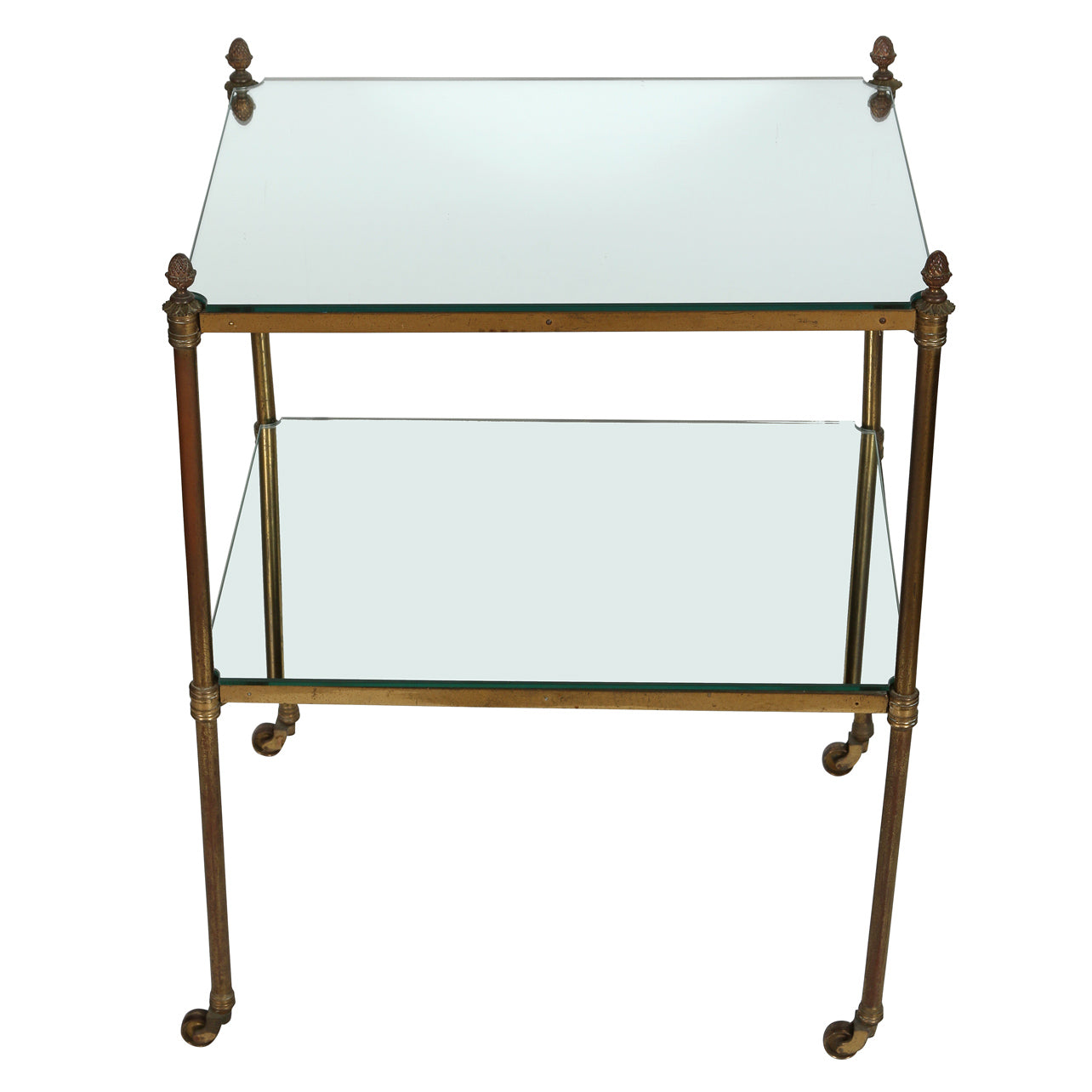 BRASS & MIRROR SIDE TABLE ON CASTERS