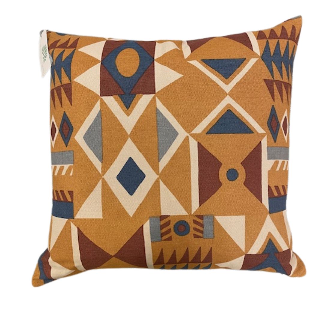 GEOMETRIC OCHRE BLUE AND WINE PILLOW
