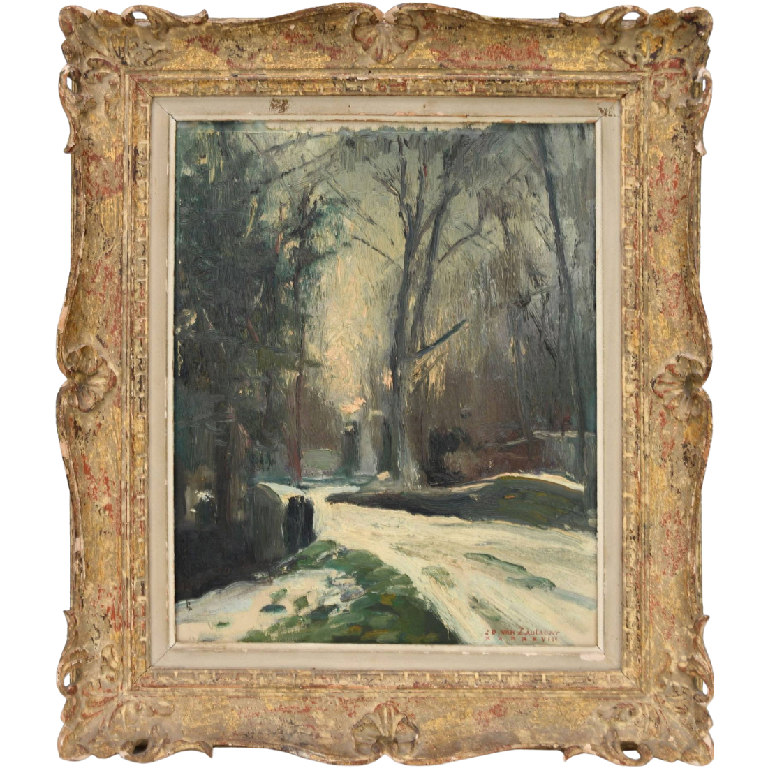 JEAN DOMINIQUE VAN CAULAERT OIL ON CANVAS WINTER PAINTING