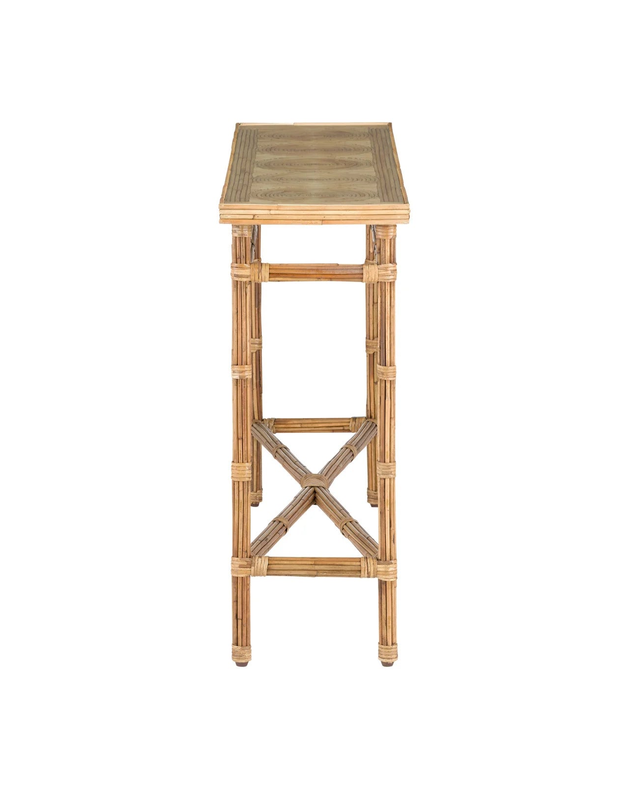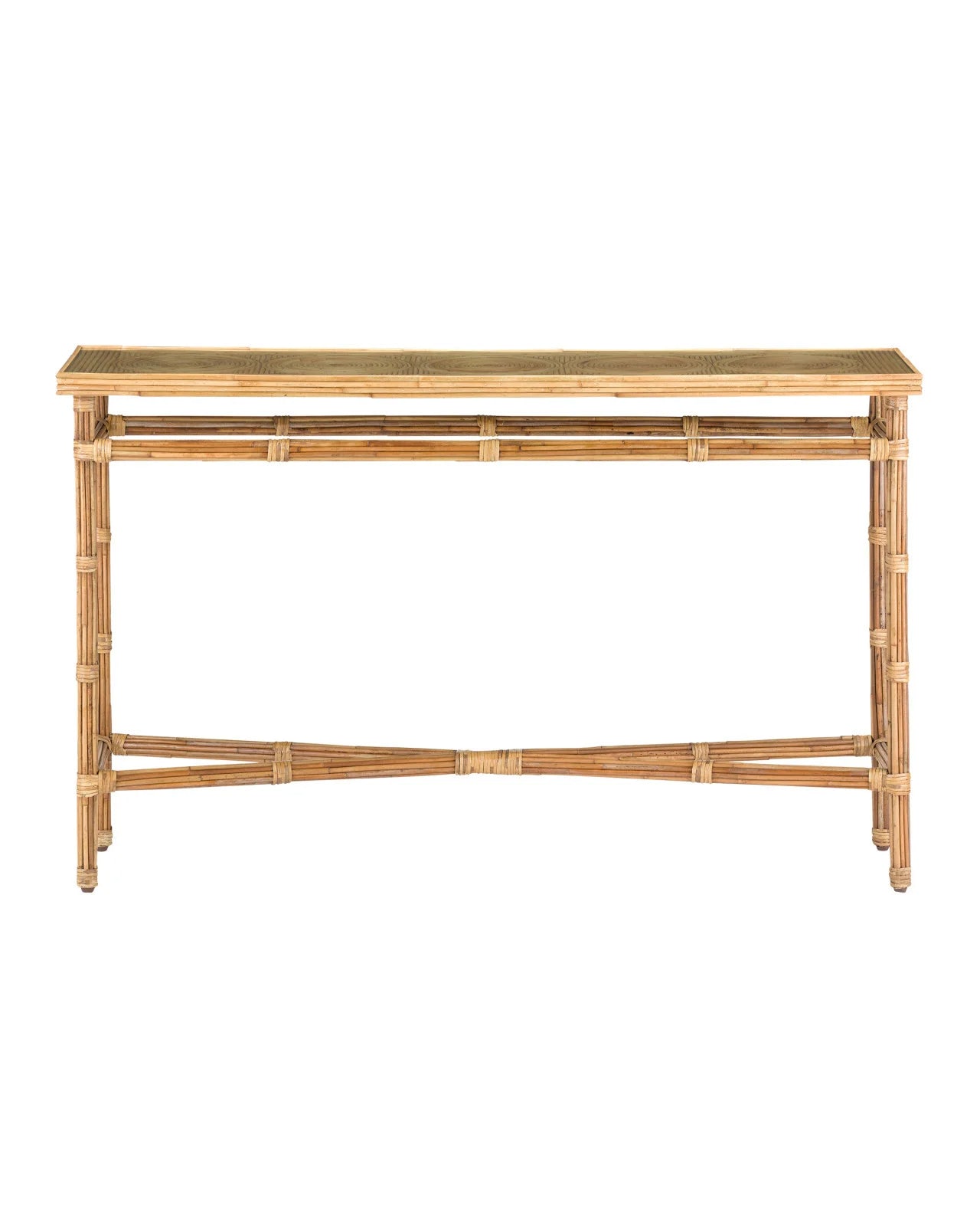 NATURAL RATTAN NARROW CONSOLE WITH GLASS TOP