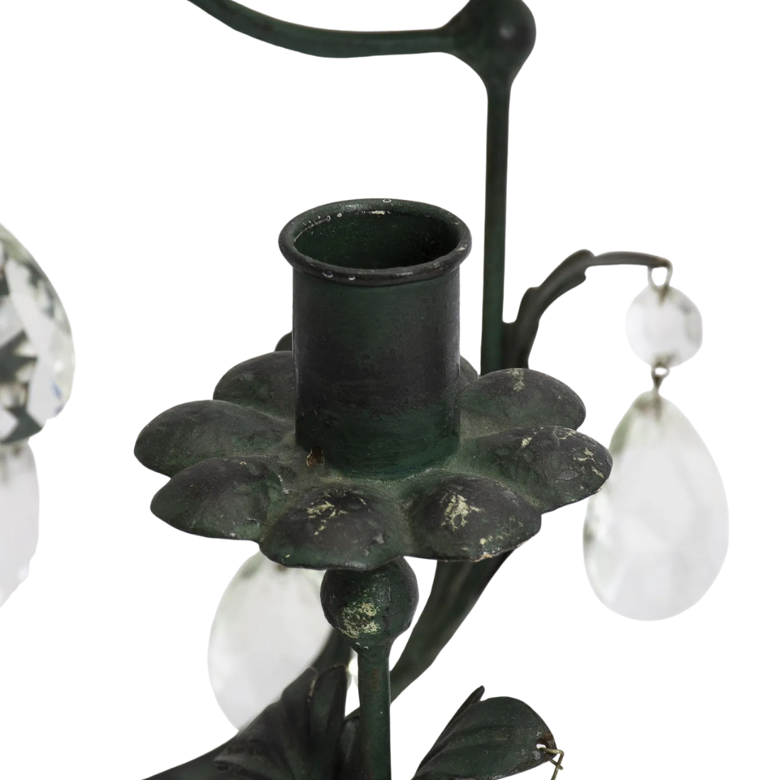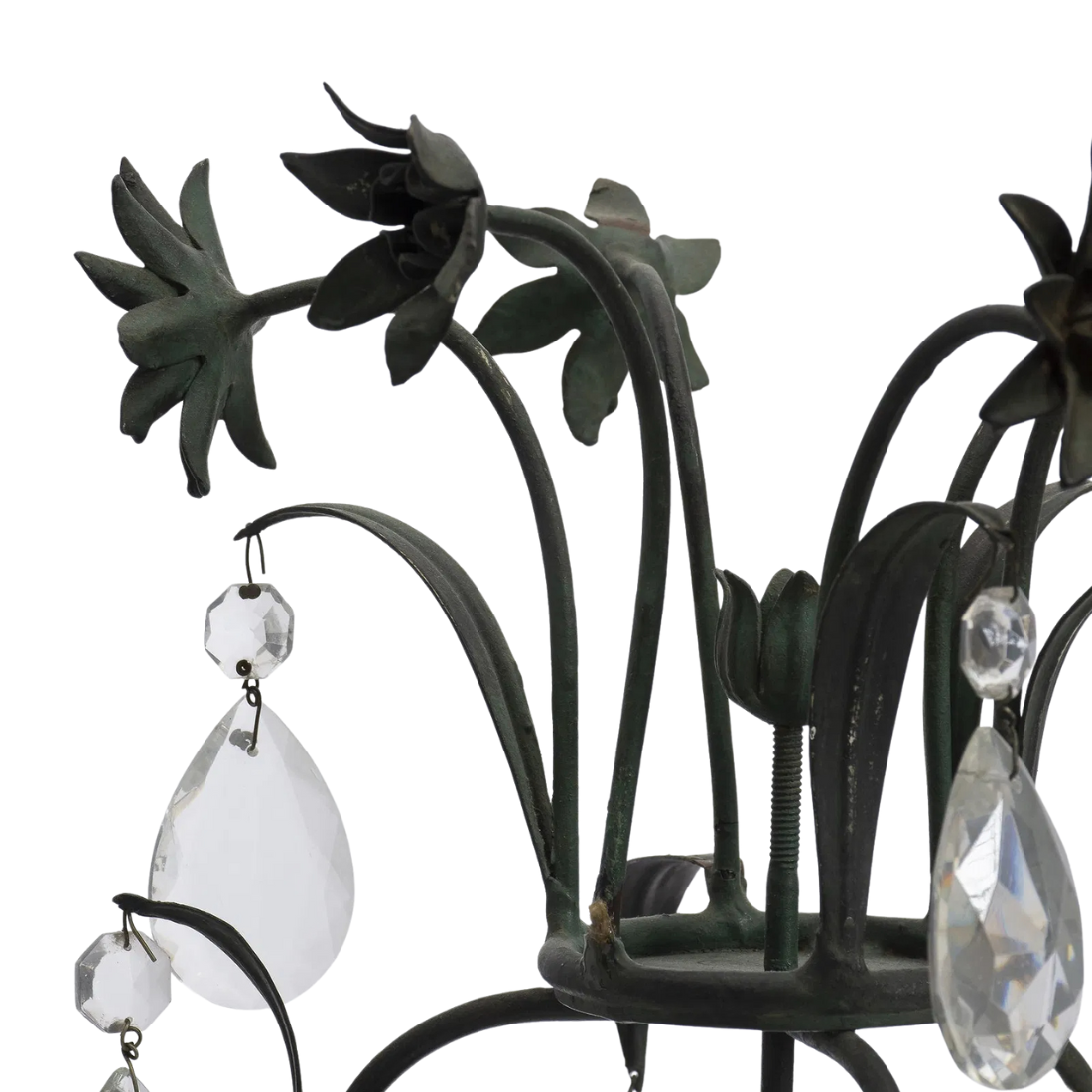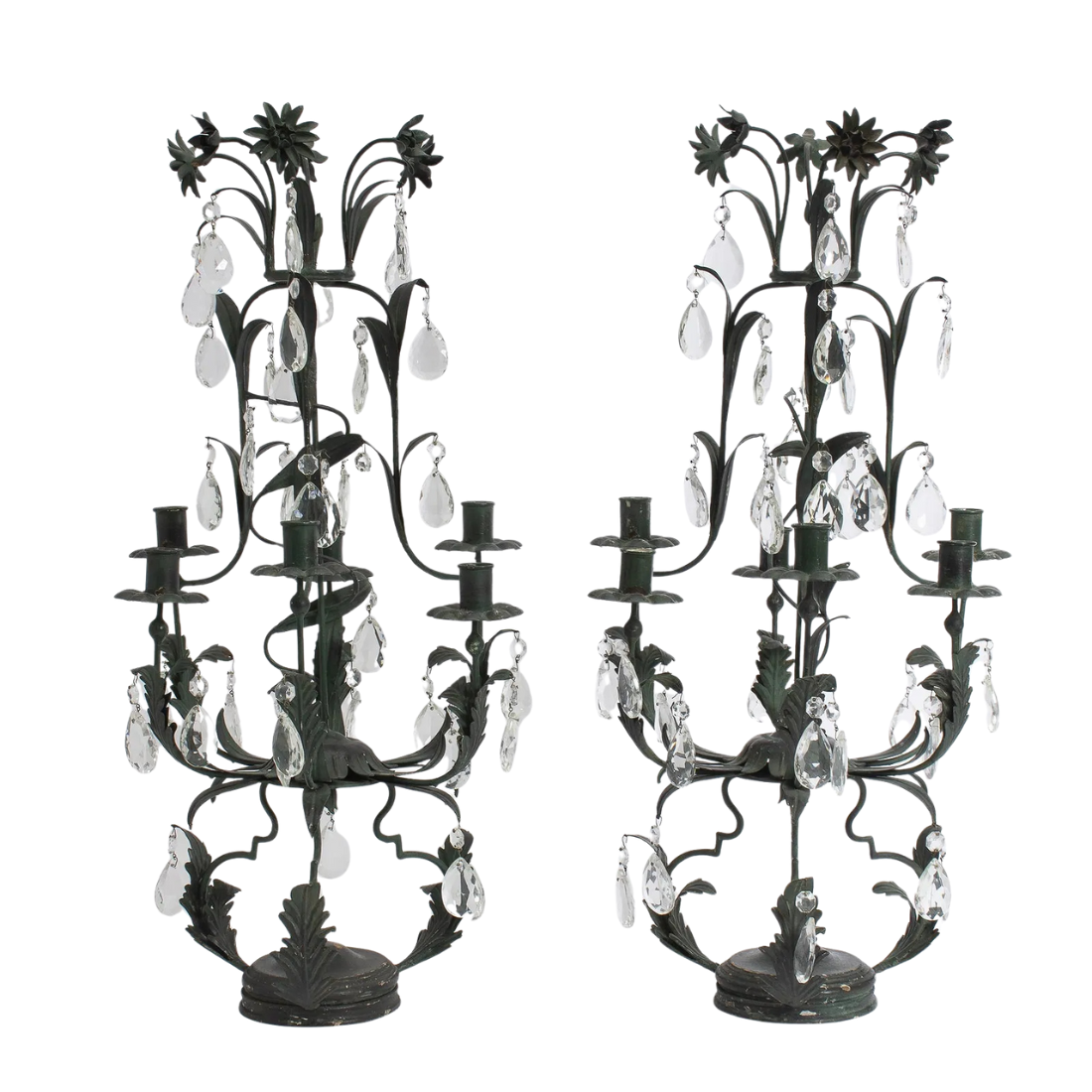 PAIR FOLIATE METAL & DROP CRYSTAL SIX LIGHT CANDELABRAS