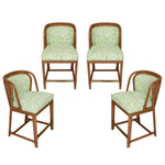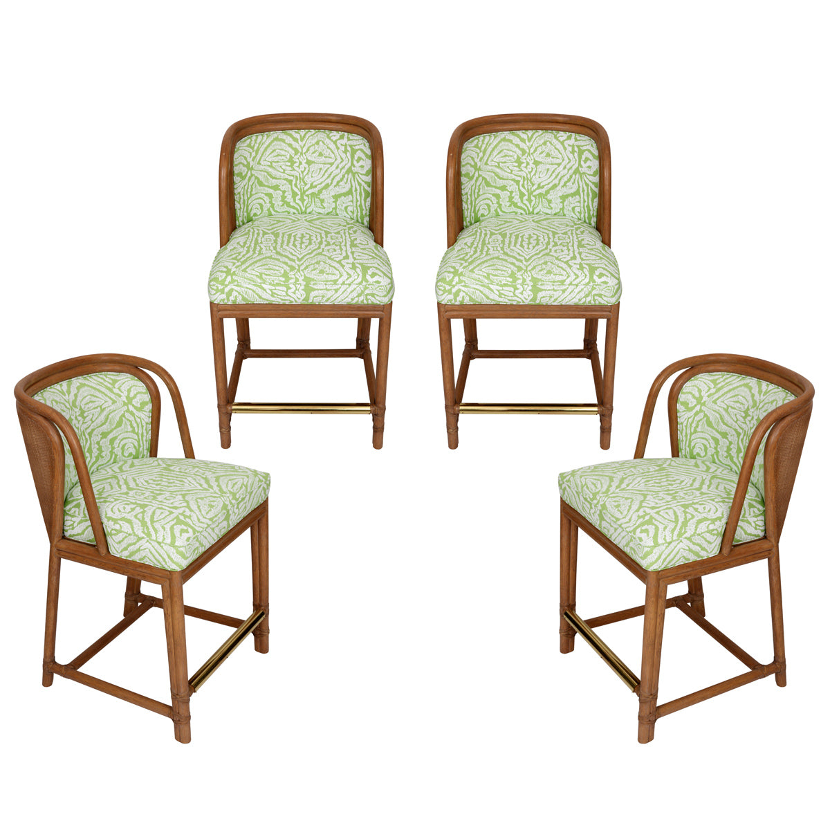 SET OF FOUR MCGUIRE BAR STOOLS NEWLY UPHOLSTERED IN MEG BRAFF VIENNA WOODS FABRIC