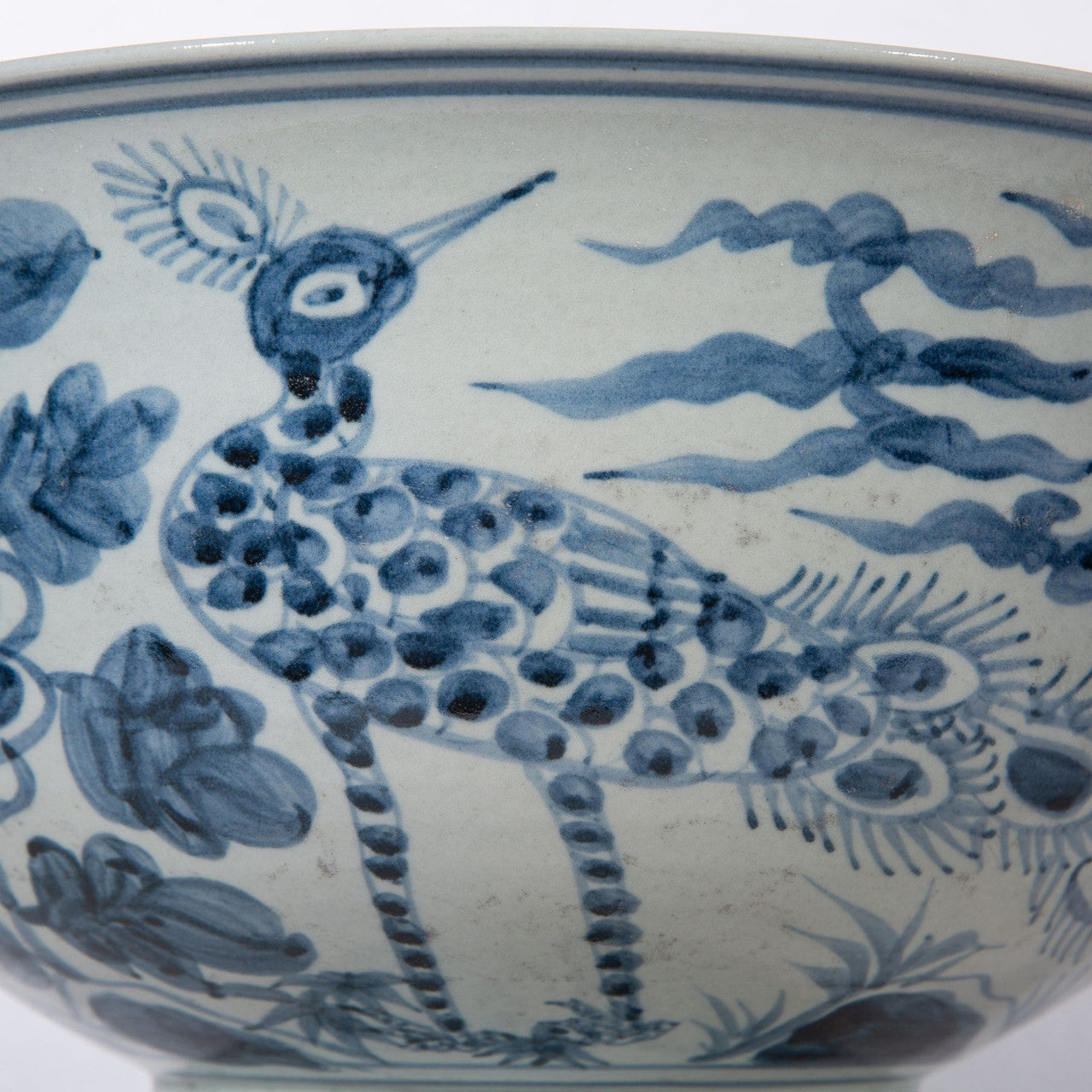These ceramic stemmed bowls feature intricate hand-painted floral motifs and elegant cranes. Combining timeless artistry with refined craftsmanship, it serves beautifully as a statement display piece or as part of a curated decorative collection.