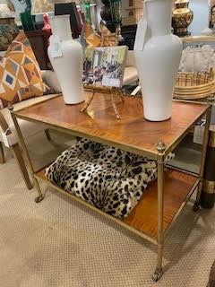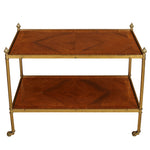 TWO TIER BRASS AND INLAID WOOD SIDE TABLE