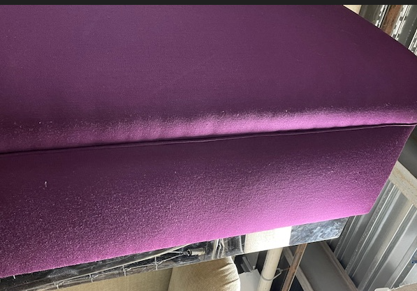 UPHOLSTERED AUBERGINE BANQUETTE WITH MIRRORED BASE