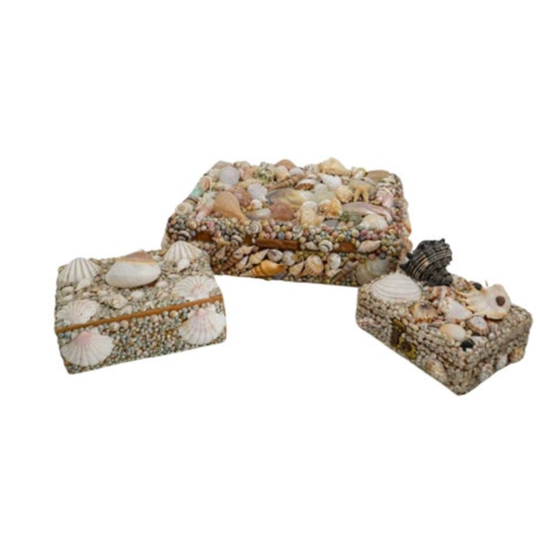 VINTAGE SET OF 3 SHELL BOXES IN THE STYLE OF ANTHONY REDMILE