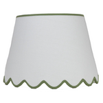 WHITE GRASSCLOTH SHADE WITH GREEN SCALLOPED TRIM